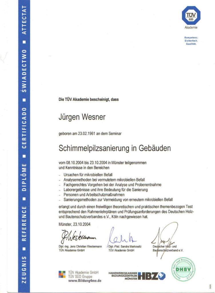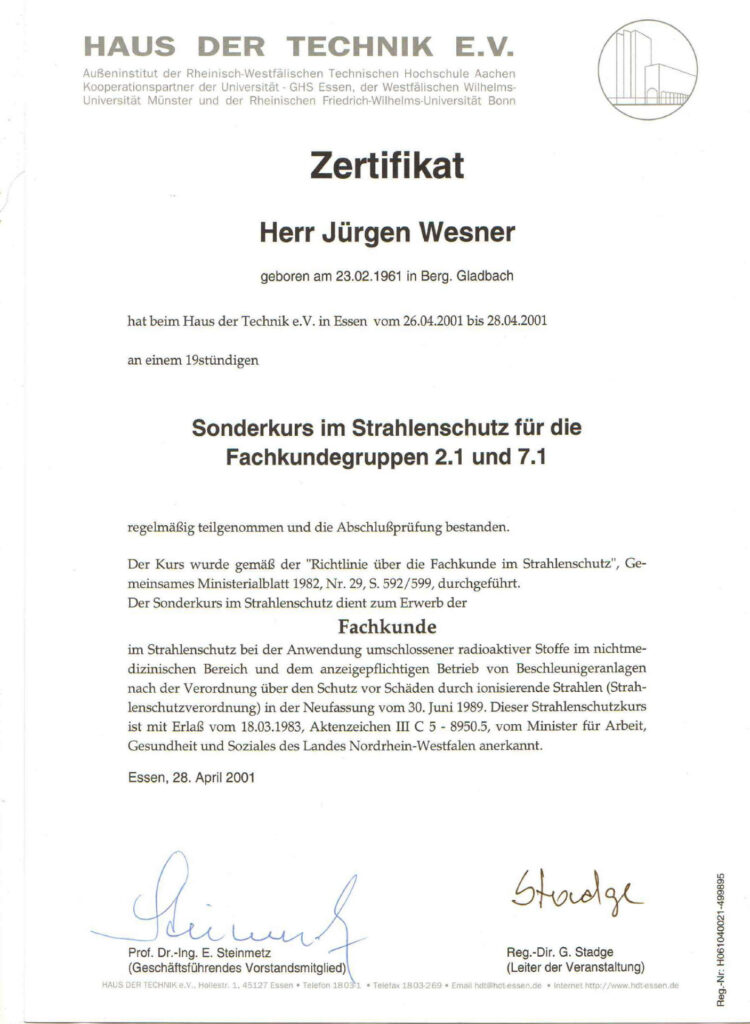 Berufliche Ausbildungen und fortlaufende Teilnahme von Weiterbildungen und Zertifkatslehrgängen arbeiten wir stets nach den neuesten Techniken und Methoden.